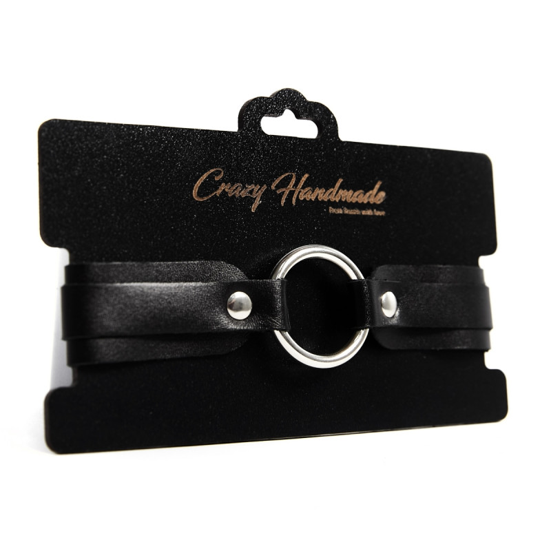 Однослойный чокер из натуральной кожи черного цвета классической прямоугольной формы. Декорирован элементом в виде маленького галстука-бабочки, прочно закрепленным на чокере.